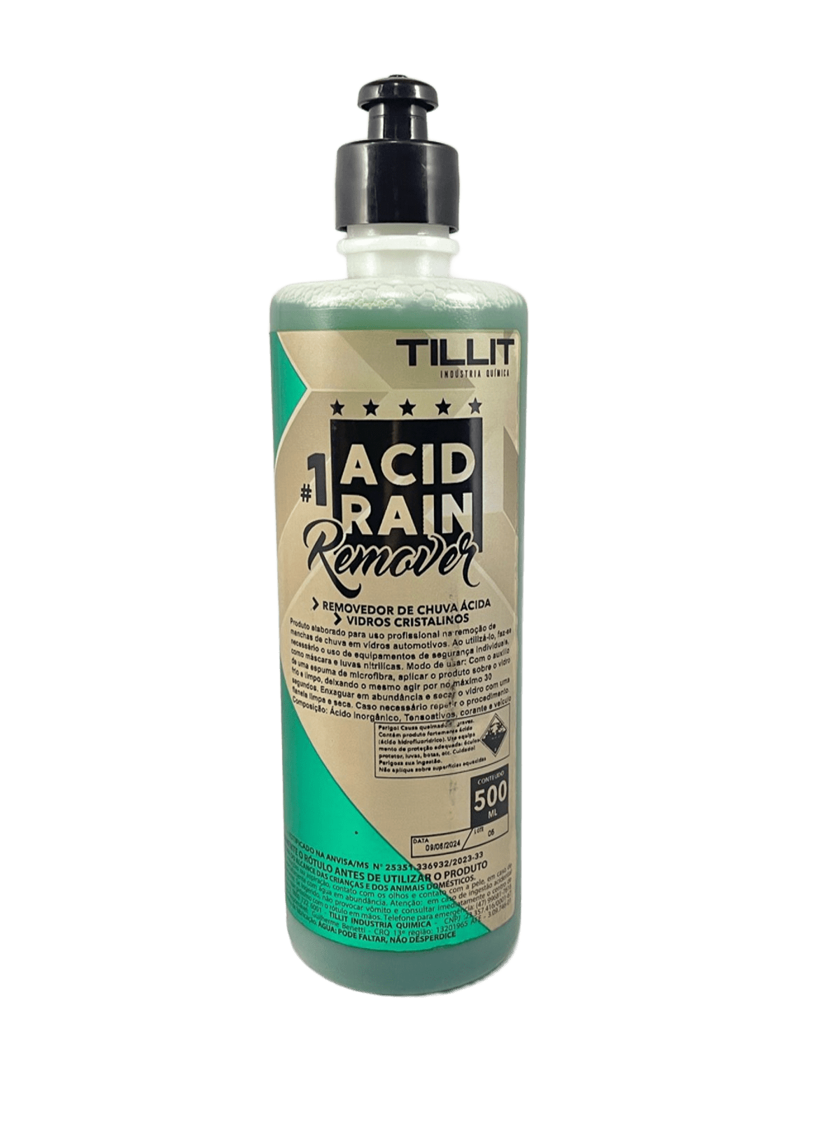 O Removedor de Chuva Ácida Tillit 500ml foi desenvolvido para eliminar manchas de água, marcas de chuva ácida e contaminantes que comprometem a transparência dos vidros automotivos. Sua fórmula de alta performance dissolve incrustações e impurezas que não saem com a limpeza convencional, devolvendo visão nítida e acabamento impecável.