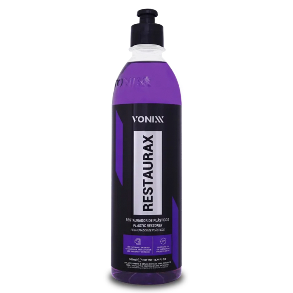 O Restaurax 500ml Vonixx é um renovador de plásticos e borrachas desenvolvido para restaurar, proteger e renovar superfícies automotivas. Sua fórmula contém polímeros especiais que garantem alta proteção contra raios UV e ação do tempo, evitando ressecamento e desgaste precoce. Proporciona acabamento brilhante, duradouro e aspecto de novo às peças internas e externas.