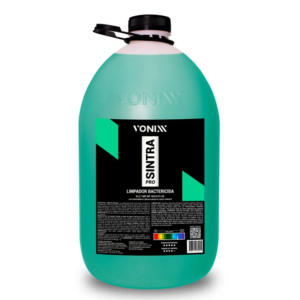 O Sintra 5L Vonixx é um limpador multiuso alcalino de alta performance, desenvolvido para a limpeza profunda de diversas superfícies automotivas. Sua fórmula concentrada permite múltiplas diluições, garantindo alto rendimento e versatilidade no uso profissional ou doméstico.